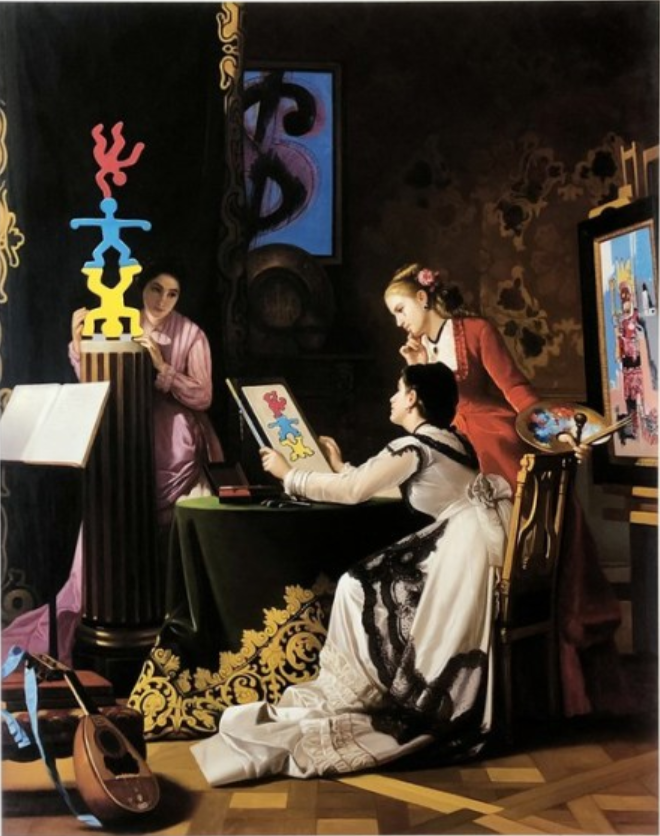 Une oeuvre d'art résiste à l'interprétation. Il va falloir forcer le niveau du premier coup d'oeil pour passer au regard, au sens de la quête de compréhension de l'artiste, en particulier quand celui-ci a volontairement caché le sens de son message derrière ce qu'il a représenté. L'élève peut exprimer :